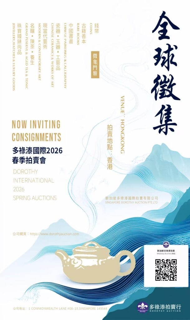 新加坡多禄溙拍卖行联合香港,澳门正在征集2026春季拍卖会拍品,详情可咨询